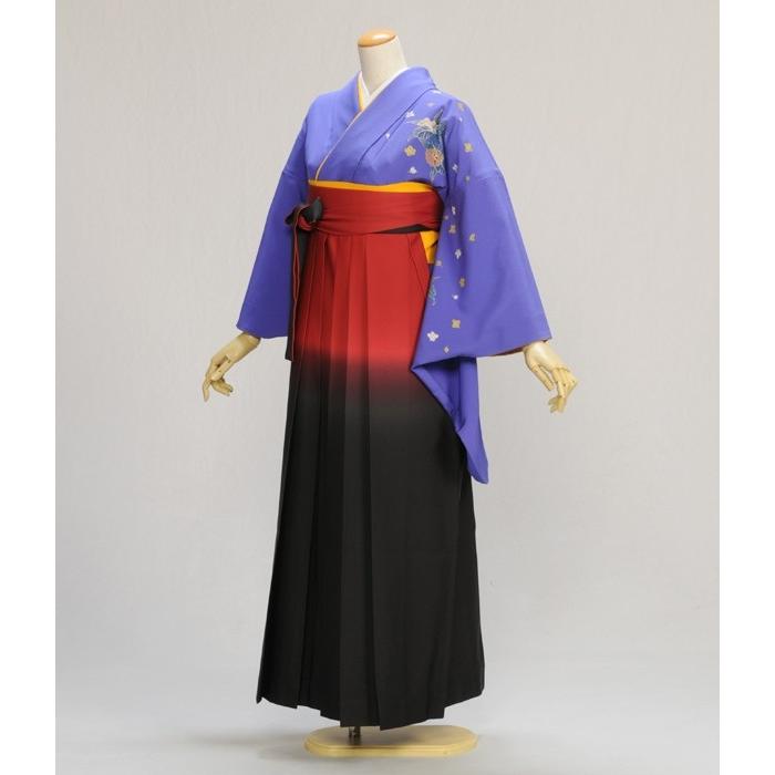 卒業式 袴 女性 着物 藤色小花カトレア 袴 赤ぼかし黒 93cm 105cm